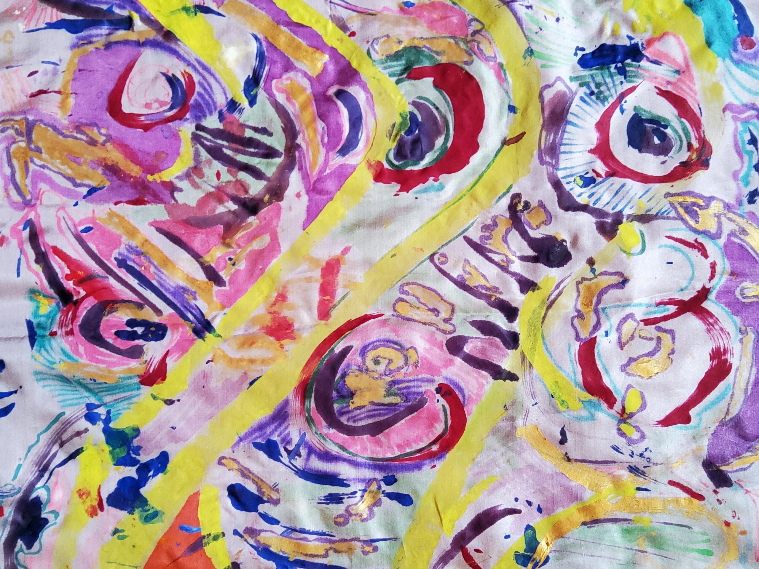 Ans Dings: “Elk van de werkstukken is het eindproduct van een speels experiment met mixed media. Er is geen vooropgezet plan of een vaststaand idee over het eindresultaat.Het materiaal roept vanzelf inspiratie en een beginconcept op. Via een proces van schakelen tussen kleur, invallen en toeval ontstaat er een balans. In de eindfase moet die recht doen aan het materiaal en het intuïtief idee. Elk werkstuk is eenmalig en uniek Restmateriaal gebruiken is een belangrijke pijler.